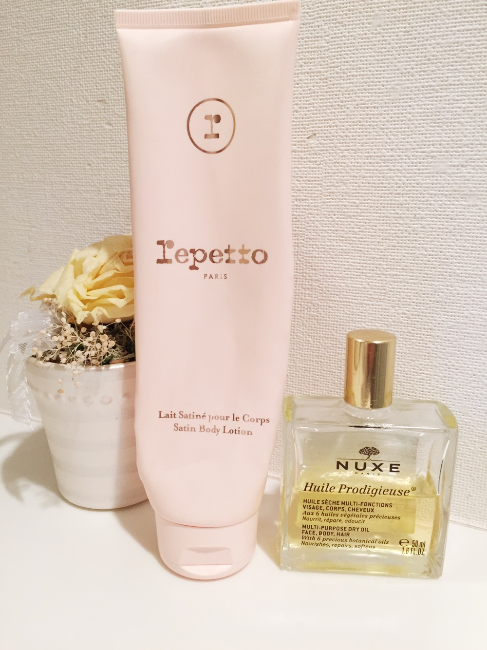 妊娠線予防にレペットボディクリームとNUXEプロディジューオイルをWで使ってます✨