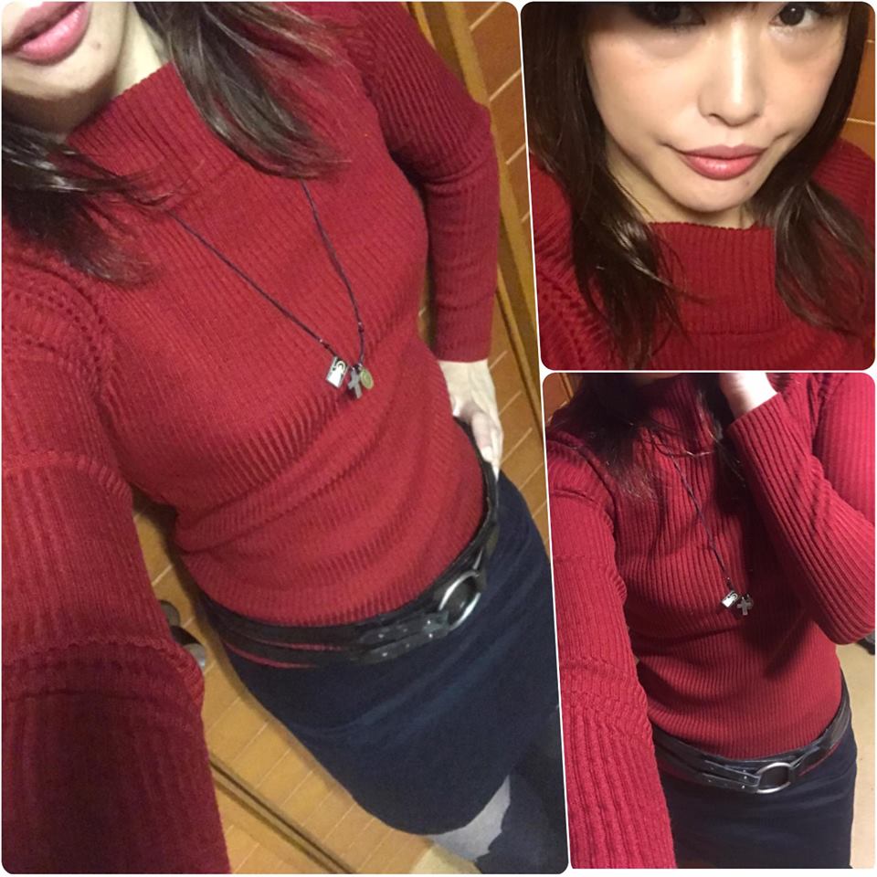 STYLESTでGETしたボルドーのオフショルリブニットで行ってきました😁