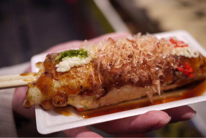 お祭りで大阪名物のはしまきを初めて食べました。お好み焼き風の味でチーズが入っていました。300円でお腹がいっぱいになりました。