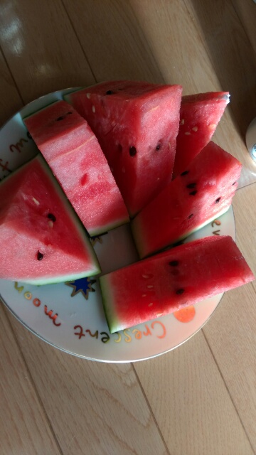 お夕食の前ですが、すいかを頂きました。