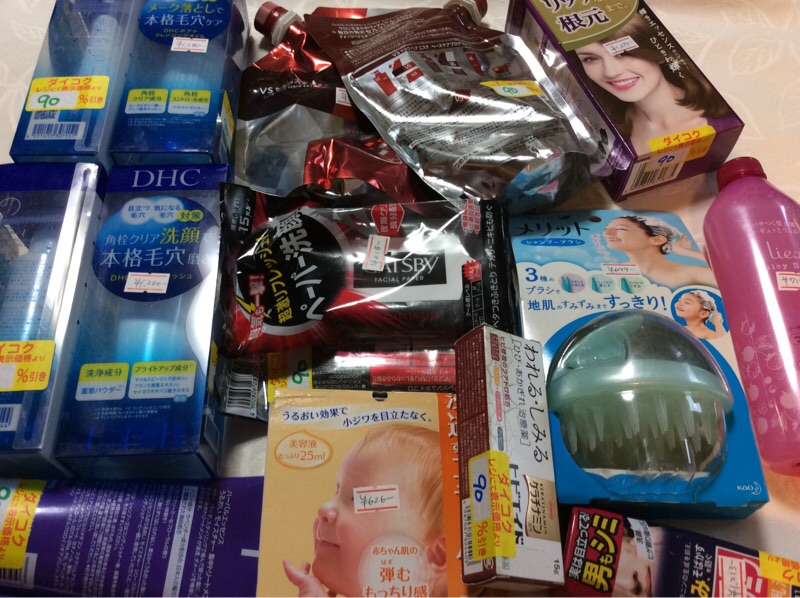 ドラッグストアのワゴンセールで90%オフの商品を買ってきました。安くて25円くらいで高い物でも150円ぐらいでした。わくわくして大人買いしてしまいした。実家の妹にも分けようと思います。