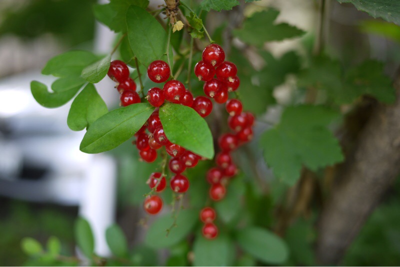 ウォーキングに行ってきました。赤い実の植物を二つ見かけました。ひとつめはスグリです。
