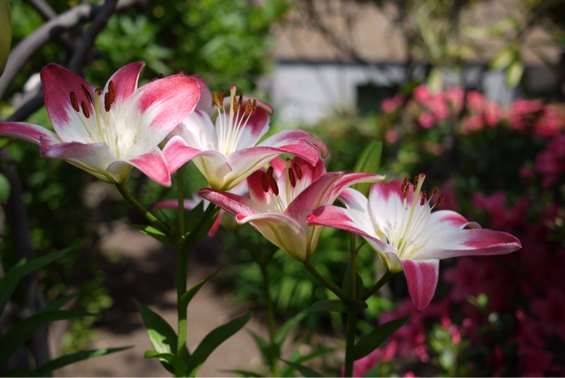 庭では、ピンクの薔薇のエリザベスが、つややかな花を幾つも付けています✿✿