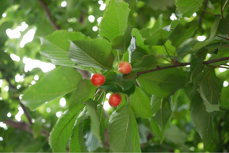 散歩道で見かけたサクランボです。去年はもっと実がついていたように記憶しています。街中で発見した初夏の色です。