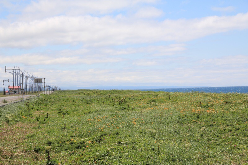 おととい主人が電話でサロベツ原生花園の人に 原生花園までの海岸線の花もきれいです。ドライブは海岸線をおすすめします。と教えてもらいました。本当にその通りでまっすぐの道に何キロも花の道が続いていて素晴らしい風景でした。きのうは お天気にも恵まれ自然の神様に感謝しました。
