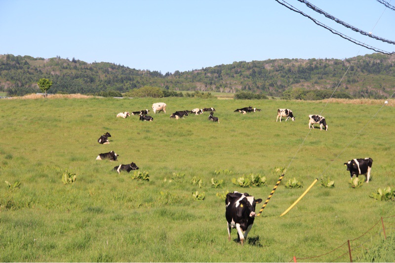 豊富町の牧場エリアをドライブ中です。牛の円陣に遭遇しました。不思議な光景です。