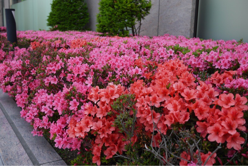 ウォーキングに行ってきました。ビルの植え込みのツツジがきれいでした。