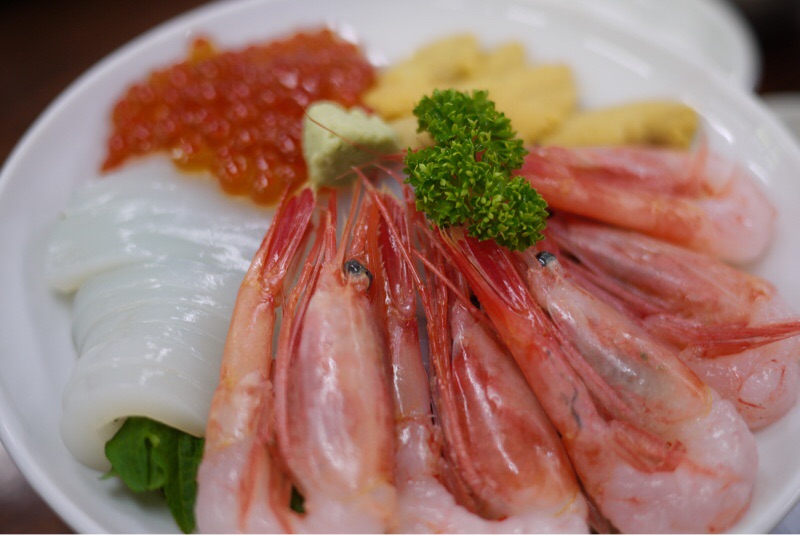 主人が食べた海鮮丼です。海老を少し分けてもらいました。今日のお昼はちょっと奮発しました。