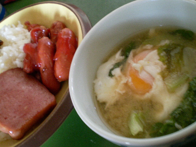 息子がお味噌汁も自分で作りました。