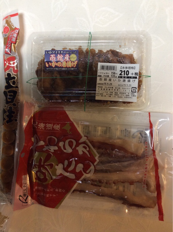ドライブから帰ってきました。函館のスーパーでおつまみを買ってきました。これから晩酌します。