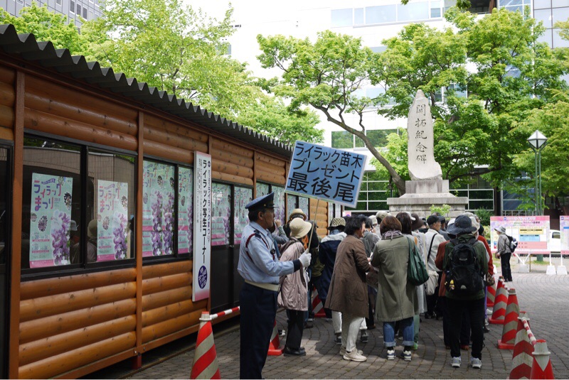 ウォーキングに行ってきました。大通公園で今日からライラックまつりです。無料のライラックの苗木プレゼントに早くから人が並んでいました。