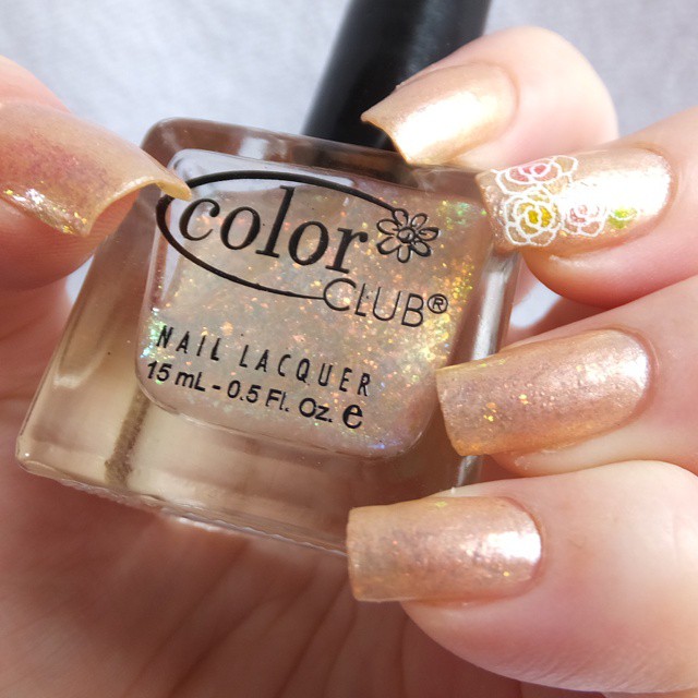 手作りポリッシュ(トップコート+マイカ)の上からCOLORCLUBのPINK PLANETを塗りました。