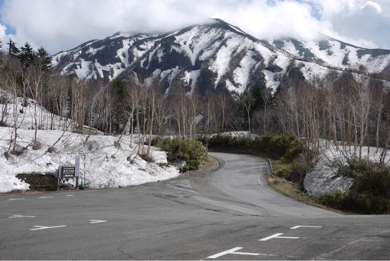 十勝岳連峰 カミホロ荘を出発です。霧が晴れて山が見えてきました。