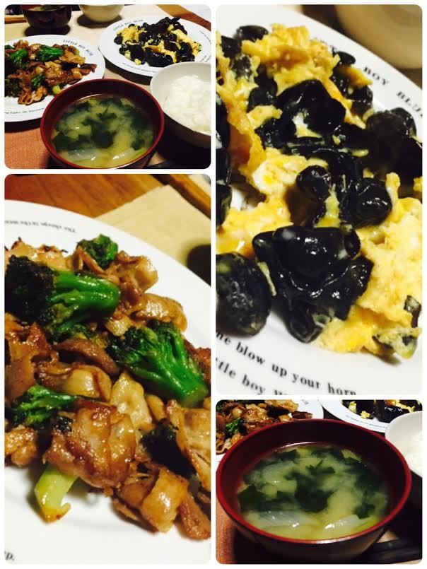 きくらげ&卵炒めと、豚肉&ブロッコリー炒め♪