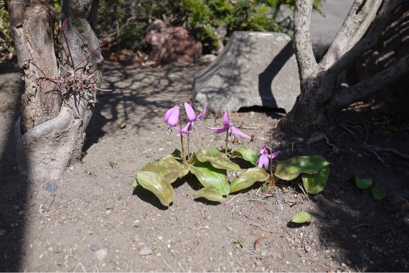 カタクリが咲いていました。今日は いくつかの春に会いました。たんぽぽ レンギョウ 水仙 ヒヤシンス つくし 蝶々 北国にいっぺんに春がきました。