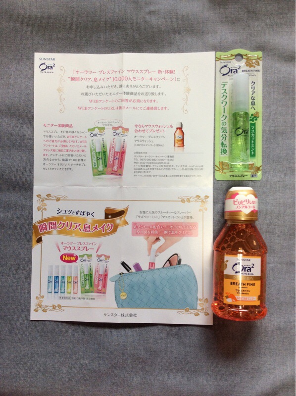 オーラツーのマウススプレーが届きました。気になるお口のにおいに すばやく対応できそうな商品です。焼肉や餃子などの食事のあとに使ってみたいと思います。