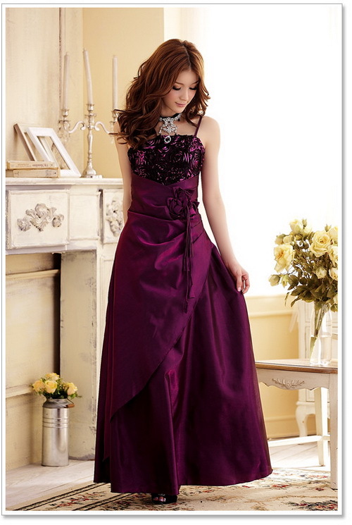 胸元バラ切り替えがとってもエレガントなロング丈ドレスワンピースです♪(*^ ・^)ノ⌒☆