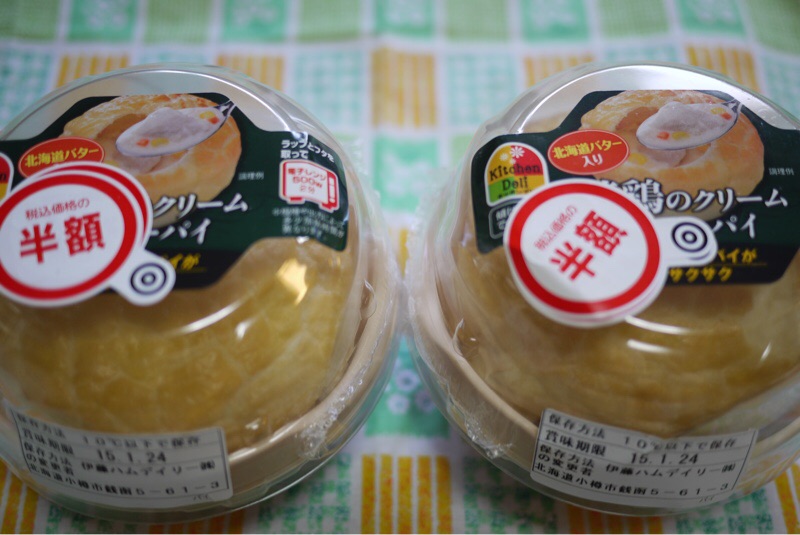 お昼ごはんは若鶏のクリームシチューパイです。日付けが昨日までで主人と食べようと思っていたのに忘れていました。お昼はひとりなのでいっきに2個食べようかなぁと思っています。カロリーが一個238Kcalです。