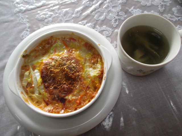 今日の昼食は、昨日の残りのシチューでドリアを作りました。