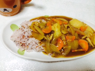 今晩はカレーとハッシュドポテト。