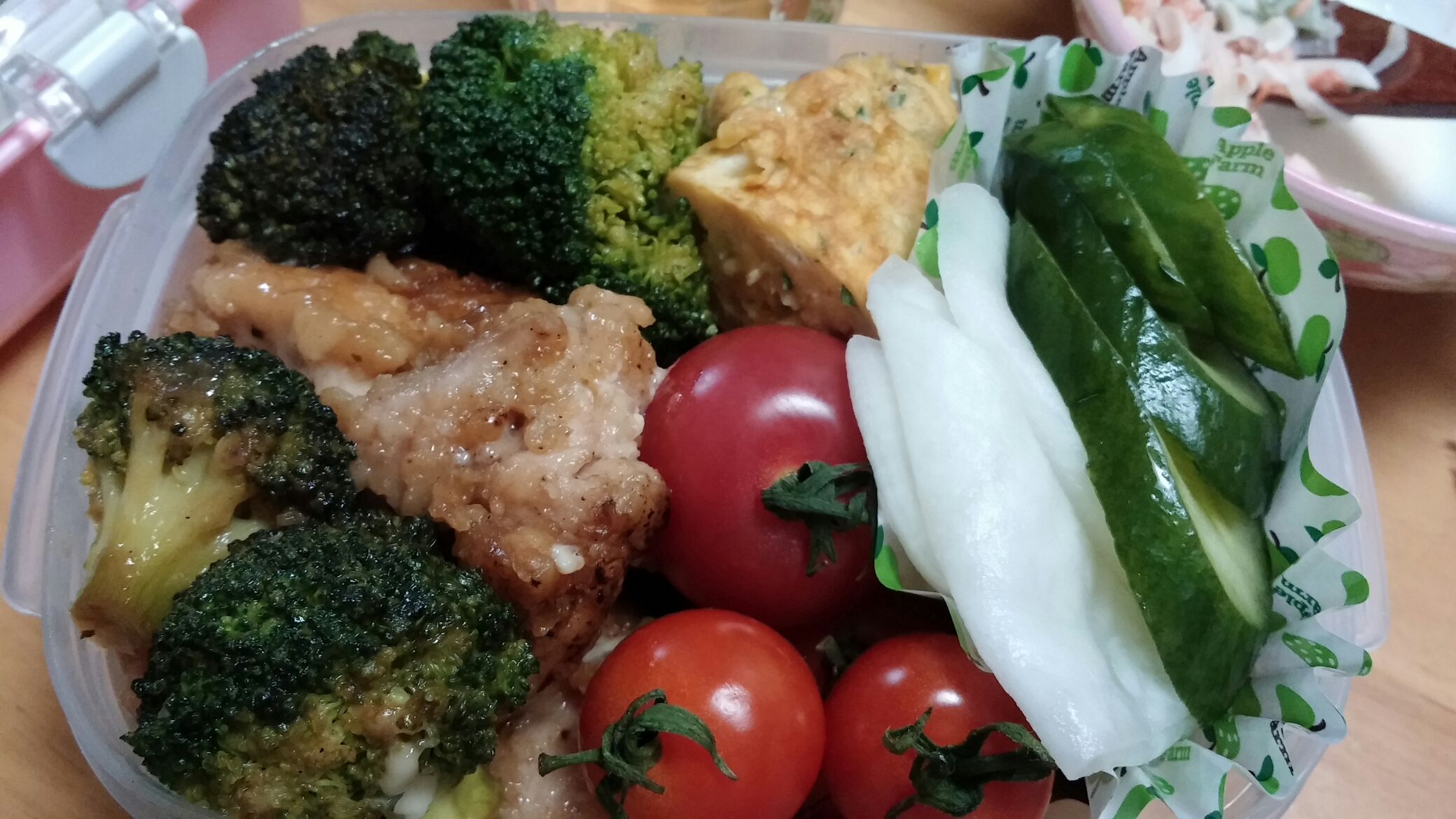 お弁当箱を回収しておりませんのでうちにございますタッパーでお弁当です。