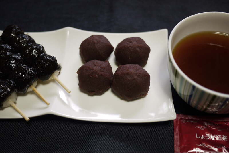 お昼はごま団子とあんころ餅です。体が冷えて帰ってきたのでしょうが紅茶といただきます。