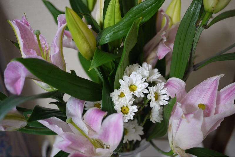 お花を買ってきました。百合がひと束100円だったので大人買いしました。お部屋にお花があると心が安らぎます。