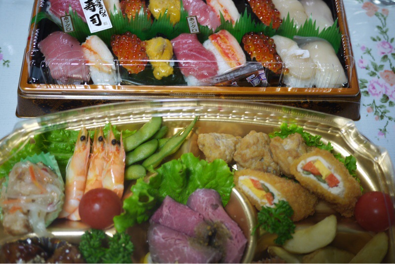 主人の実家にきています。お寿司とオードブルを買ってきました。スパークリングワインを飲んでいます。