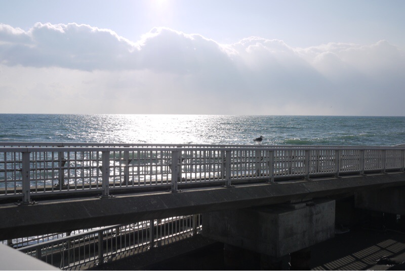 海が見える道をドライブ中です。今日の太平洋は風が強く波も荒れています。