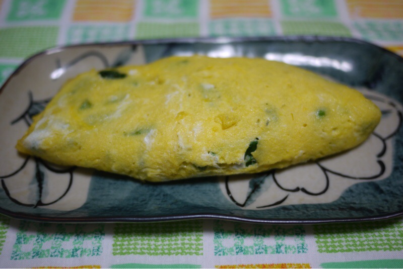 主人が帰ってきました。食欲がなくて夕食がまだだと言うとほうれん草のオムレツを作ってくれました。卵料理が作れる事を初めて知りました。いただきます。
