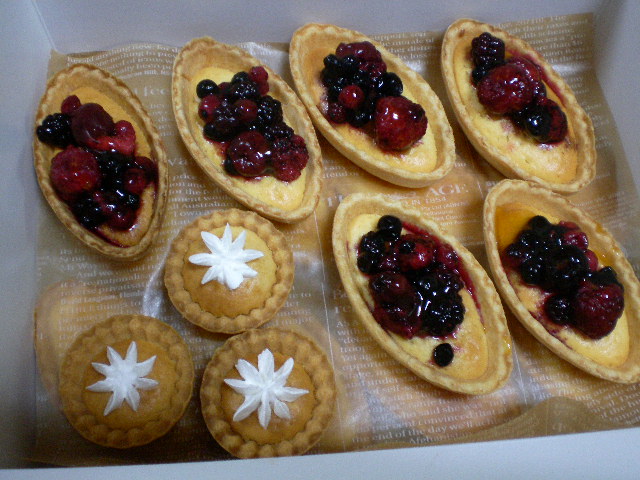 上の段にベリーmix&生クリームinミニタルトです*✲゚*。