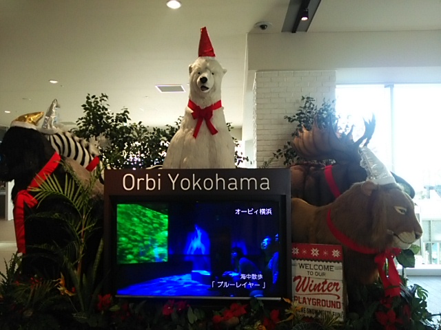 入口にあったクリスマス仕様の動物たち
