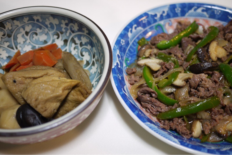 家に帰ってきて夕ご飯を作りました。プルコギと野菜を炒めました。あとは昨日の残りの煮物で晩酌します。主人はスーパードライ、私はのどごし生で乾杯しました。それではいただきます。