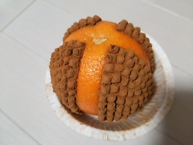 ポマンダーのクローブ、やっと刺し終りました
