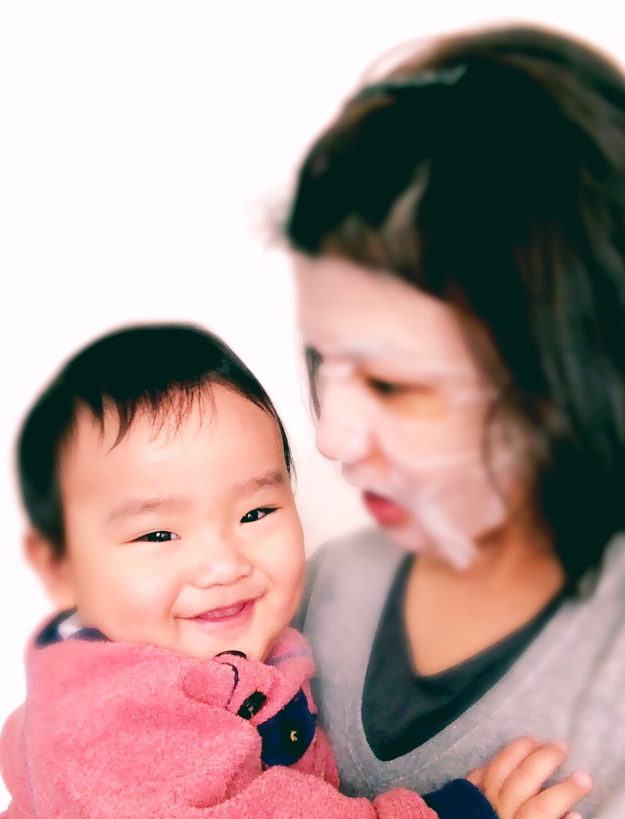 冬の乾燥対策というと、朝晩のシートマスク!息子もパック顏に大喜び(^^)パック顏コンテストのご参加もお待ちしています♩