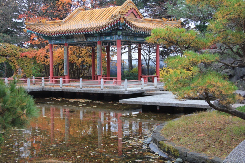 百合が原公園の中華庭園です。極彩色の建物と紅葉がマッチしています。