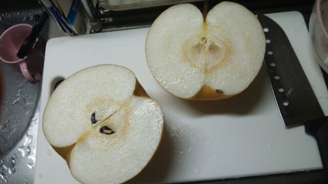 いただいた梨も食べたいのです…大きいから半分ずつにしなきゃ、