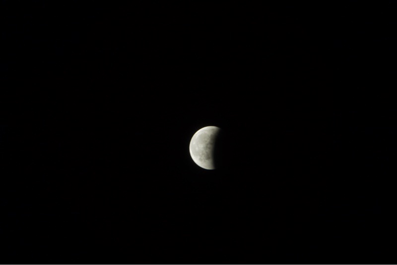 やっと少し晴れて、赤いブラッドムーンは見れませんでしたが、欠けた月は見られました。良かった…。