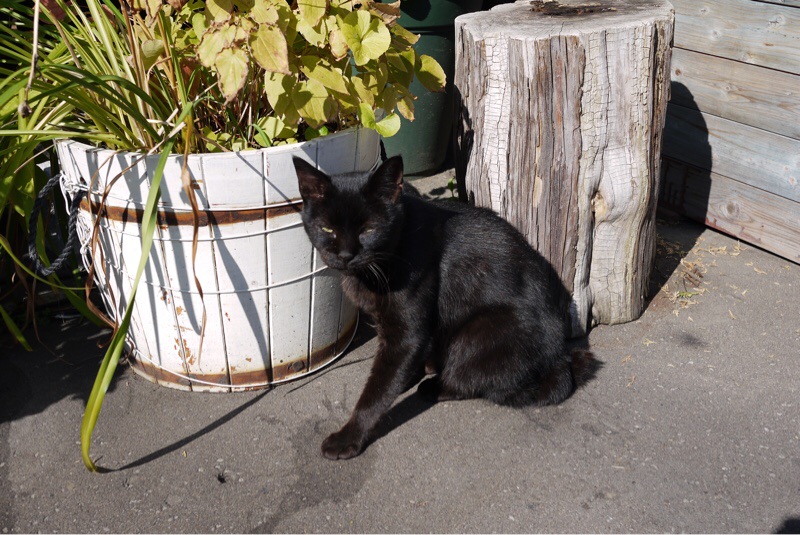 散歩から帰ってきました。黒猫さんにあいました。写真を撮っていたらお店の女性主人がでてきてこの子はノラちゃんと話しかけてきました。