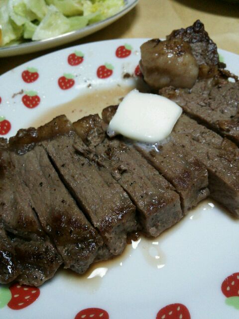 画像は私のステーキですのですが、彼の分はもっと大きいです!
