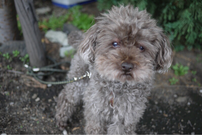 散歩中に会ったわんこです。こっち見てと言ったらしっかりカメラ目線です。