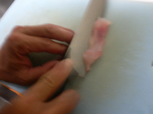 下の画像の切り身を旦那がおつまみ用に(私用に)^^; きってくれてます。