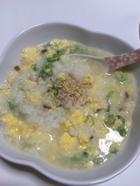 土日飲み食いし過ぎたので、今日はたまご雑炊にしました。