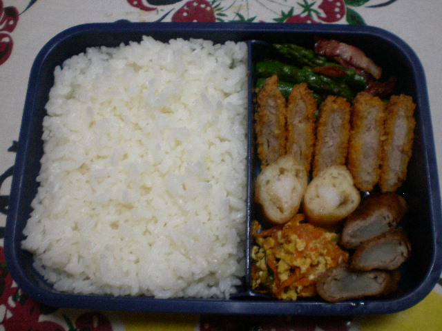 ミニとんかつ。ゴボウの肉巻き甘辛炒め。