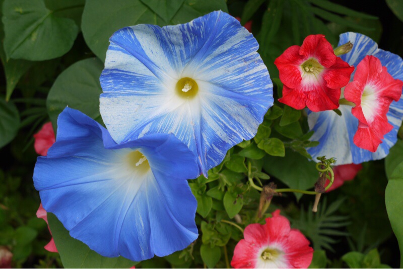 きのうスイカとメロンをもらったお隣の奥さんにエプロンをもっていきました。お庭のアサガオの写真を撮らせてもらいました。