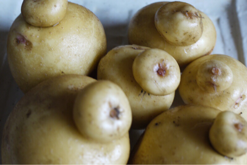 今日もじゃがいもの収穫をしました。面白いかたちのじゃがいもを見つけました。