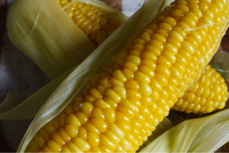 トウモロコシが茹で上がりました。昔から母は皮付きで茹でます。その方が美味しいそうです。それではいただきます。
