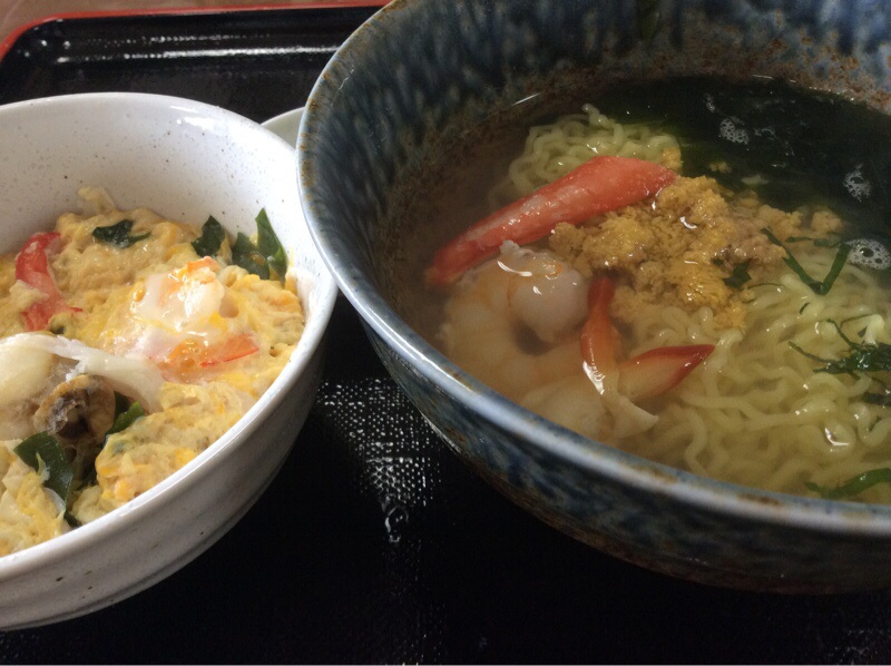 ドライブで三陸海岸にきています。お昼ごはんを種差海岸の波光食堂でいただきました。ミニ磯丼とミニ磯ラーメンセット 800円です。磯の風味がたっぷりでおいしかったです。