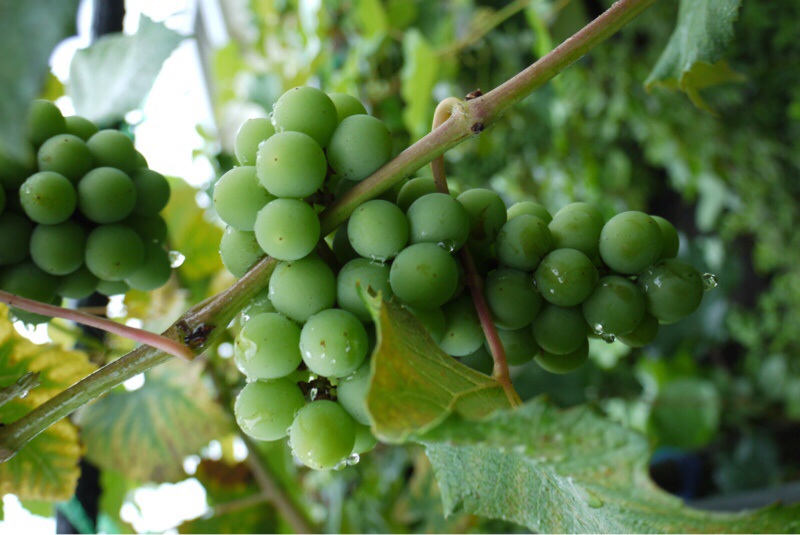 おはようございます。小雨が降っています。実家の裏の畑のぶどうが雨にぬれています。