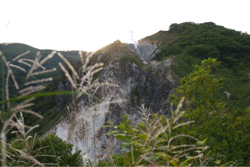 登別温泉の日和山です。立ちのぼる煙と硫黄のにおいとシュシュという噴煙の音が聞こえました。ススキが秋を感じさせます。